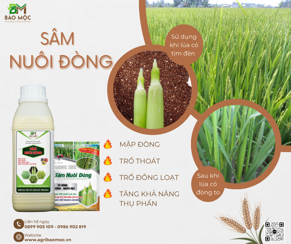 - Phun giai đoạn đòng - trổ, pha 50ml Sâm nuôi đòng cho bình 25 lít nước